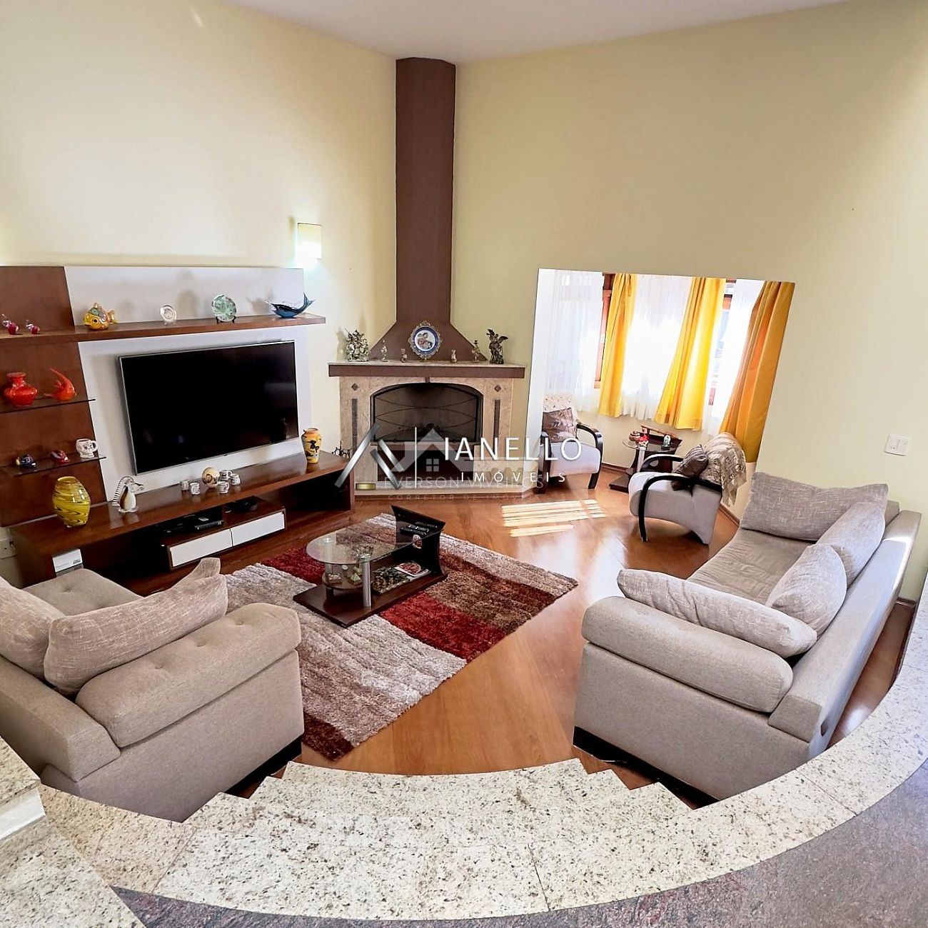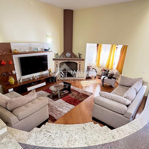 O living oferece três ambientes distintos: sala de jantar, sala de TV e uma charmosa sala com lareira, criando cenários ideais para convívio, relaxamento e momentos especiais com a família e amigos.