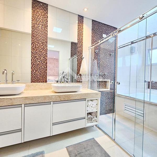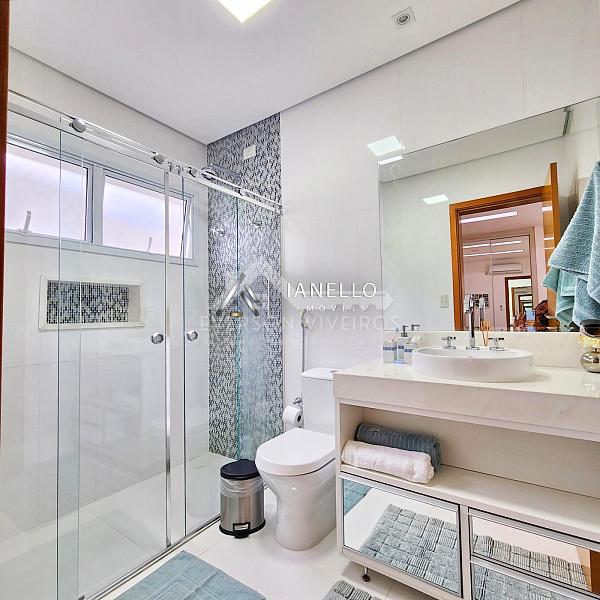 Na área íntima, são 4 suítes bem distribuídas. A suíte master se destaca pelo closet e banheira de hidromassagem, enquanto uma suíte adicional oferece espaço opcional para sauna, trazendo um diferencial raro para quem busca relaxamento dentro de casa.