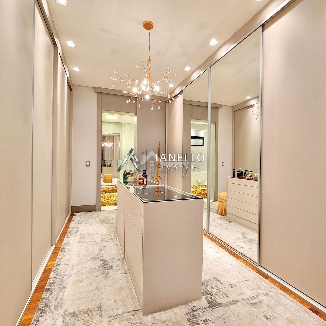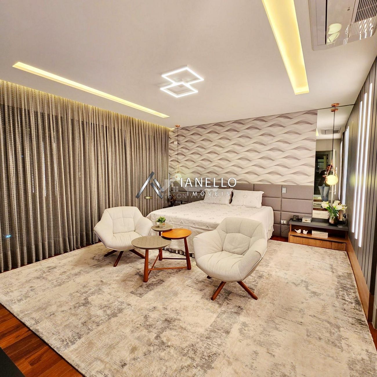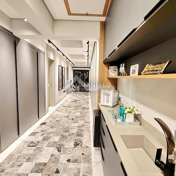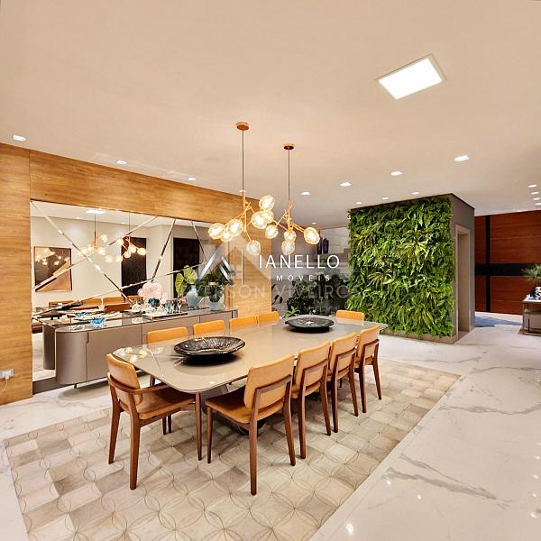 A cozinha clean e funcional é integrada à sala de jantar e se abre para uma sacada com vista panorâmica do condomínio, valorizando ainda mais a área social. Na área íntima, são 4 suítes climatizadas, todas com persianas automatizadas. A suíte master impressiona pelo espaço, varanda privativa, closet amplo e banheiro com hidromassagem.