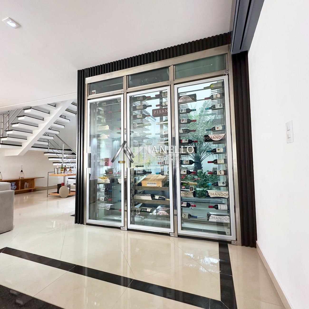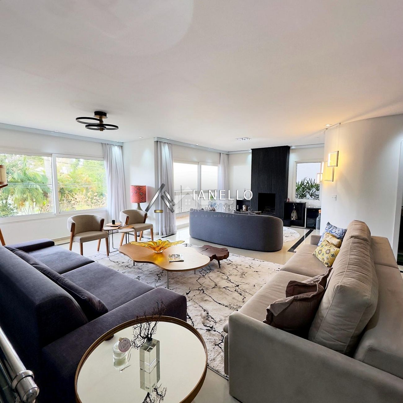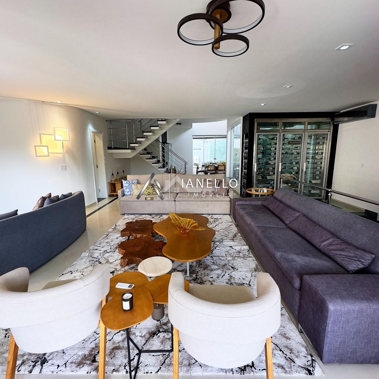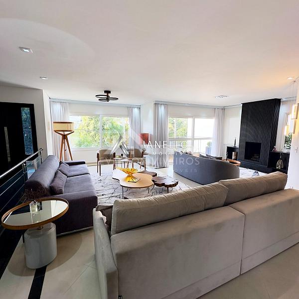 • Living com sala de TV, sala de lareira e adega climatizada
