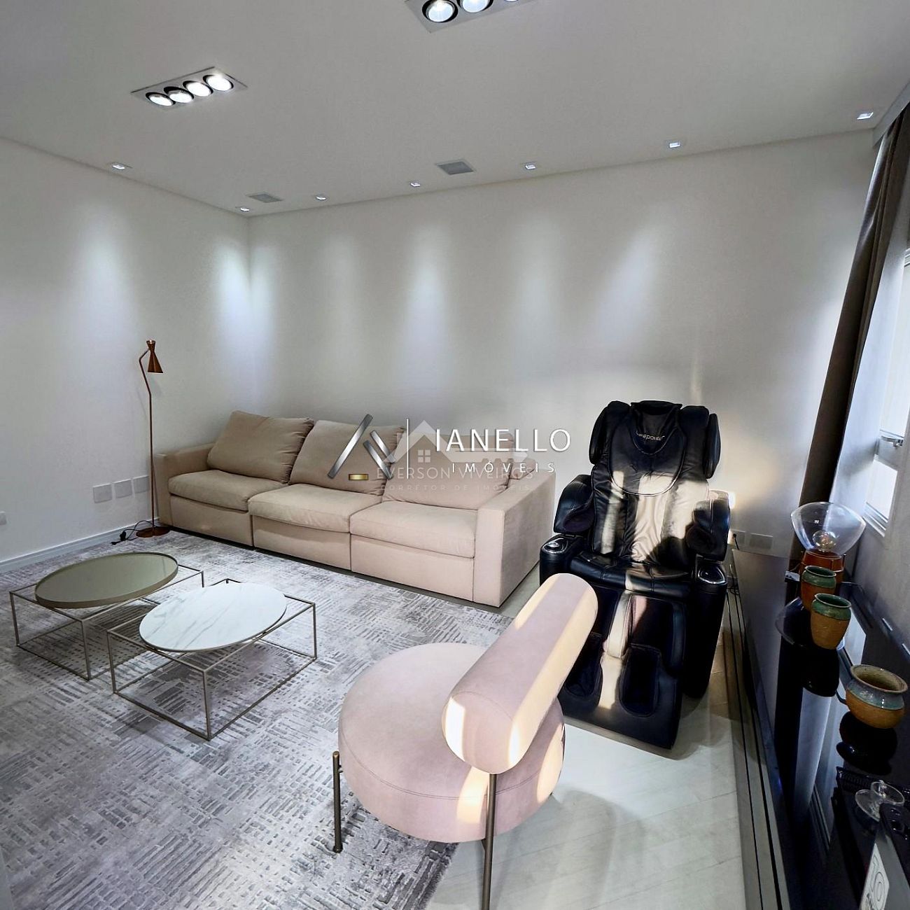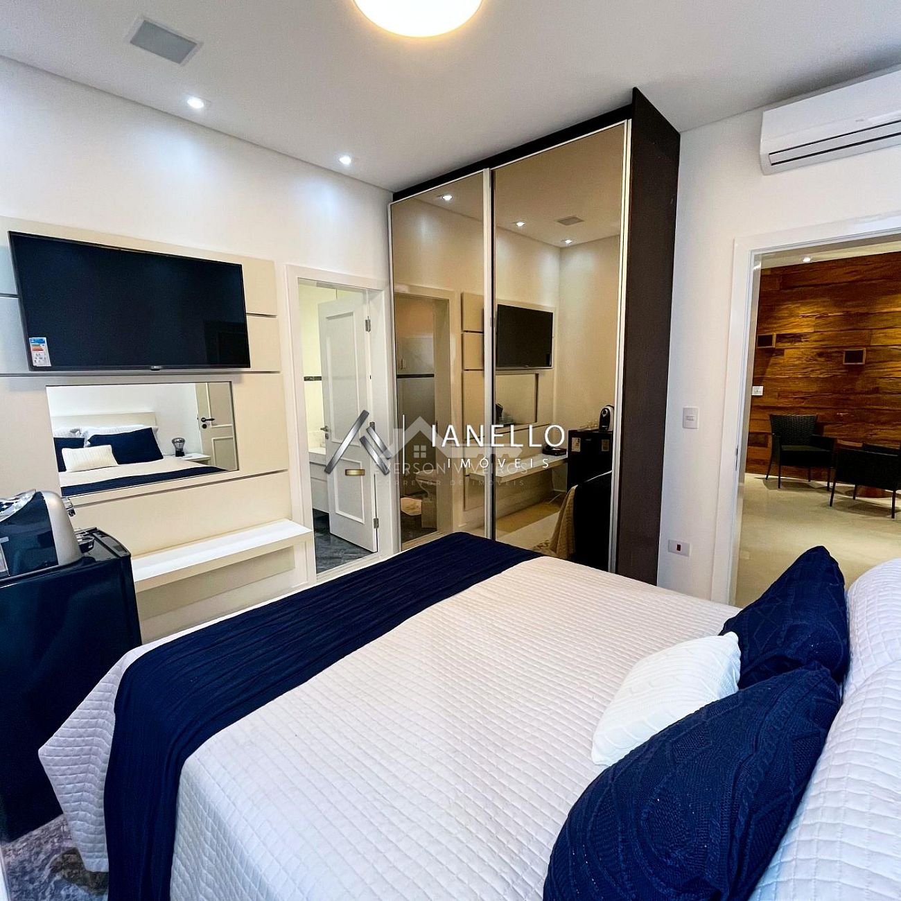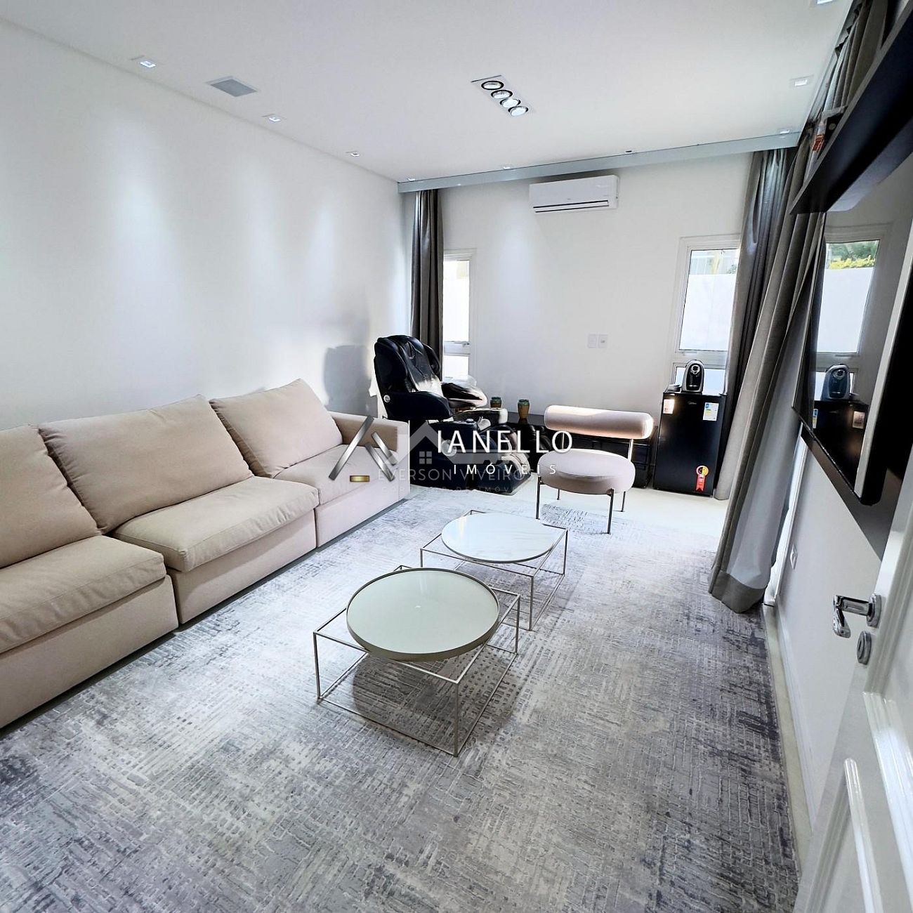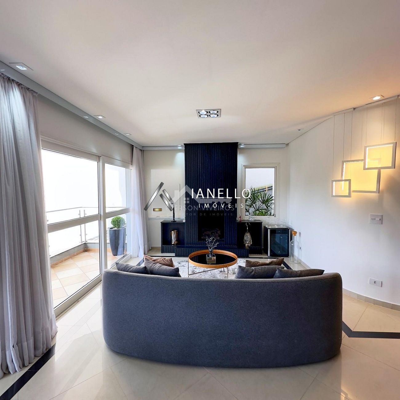 • Living com sala de TV, sala de lareira e adega climatizada