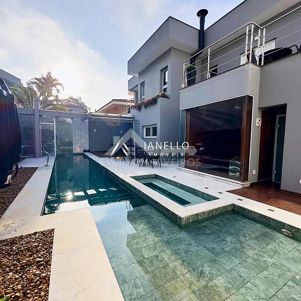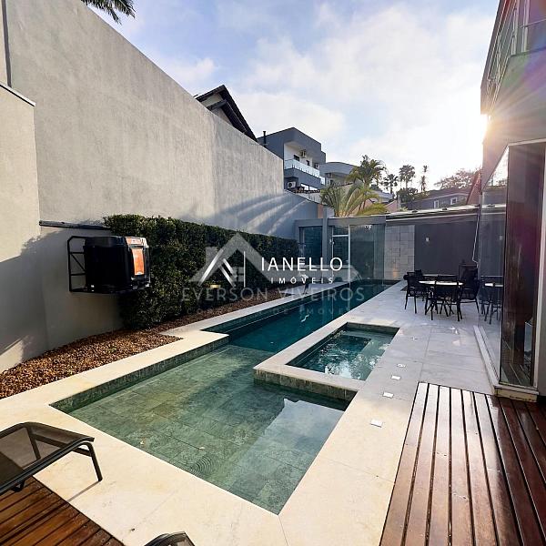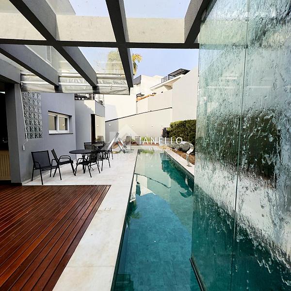 O projeto impressiona logo na chegada com pé-direito duplo, jardim de inverno e uma vista espetacular para o lago, emoldurando os ambientes sociais com sofisticação e serenidade. O living reúne sala de TV, sala de lareira e adega climatizada, criando um espaço acolhedor para todas as estações.