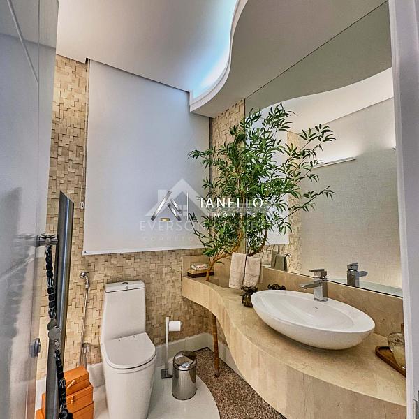 Totalmente mobiliada e decorada com extremo bom gosto, a residência permite mudança imediata, sem necessidade de reformas. Recursos como ar-condicionado em todos os ambientes, aquecimento elétrico e a gás e móveis planejados elevam ainda mais o nível de conforto. O imóvel conta ainda com quarto de empregada com banheiro.