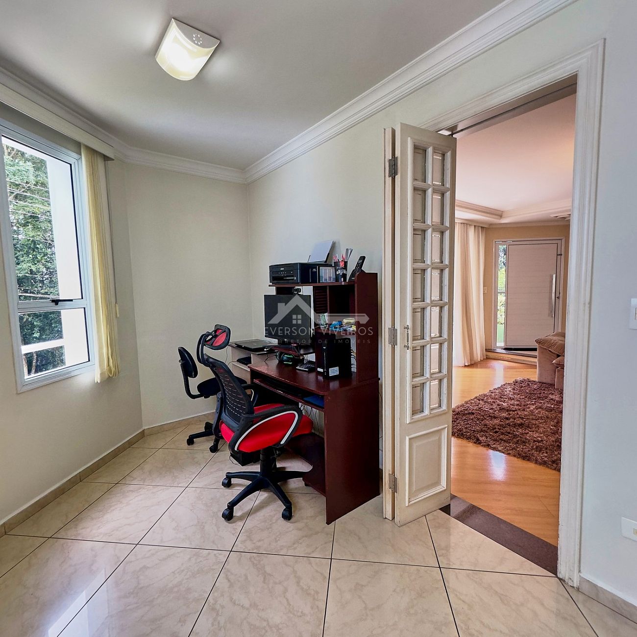De forma independente, a sala de TV proporciona mais conforto e privacidade para momentos de descanso e entretenimento.