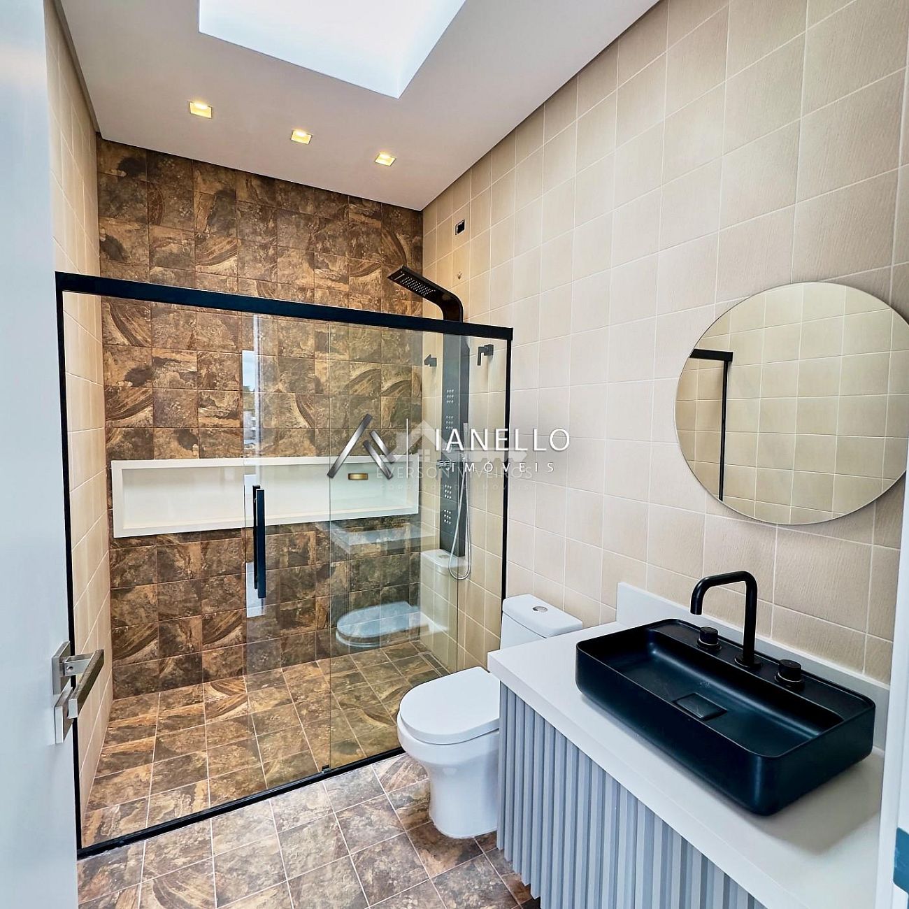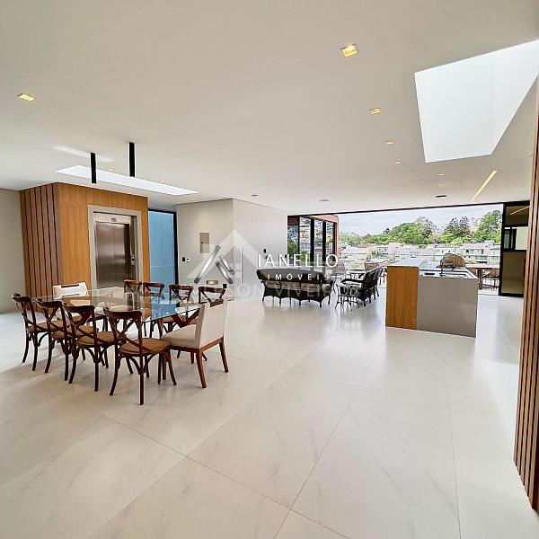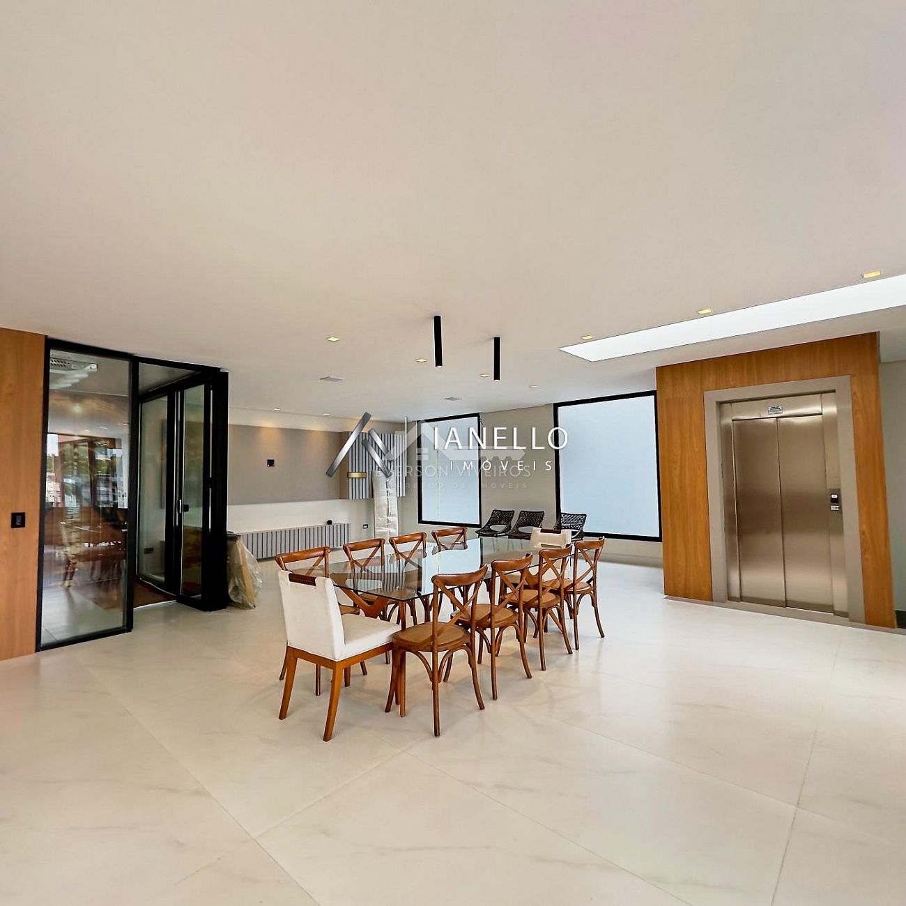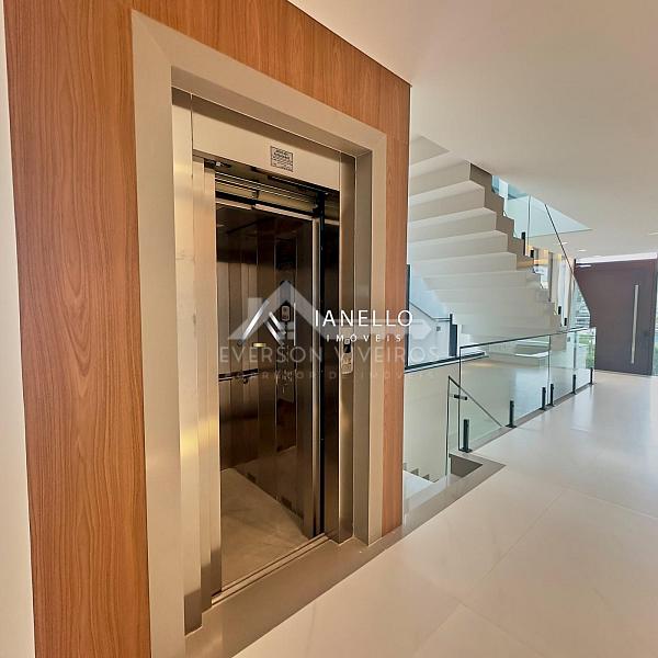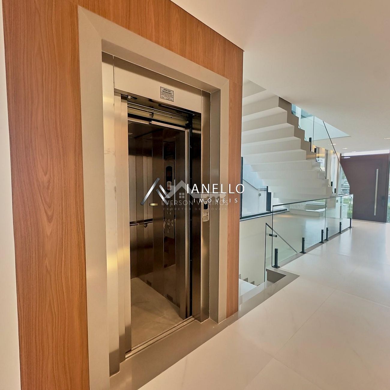 Com 570,43 m² de área construída, os ambientes foram desenhados para unir elegância e funcionalidade. A circulação entre os pavimentos é fluida e confortável graças ao elevador, enquanto a automação total permite controle inteligente de iluminação e recursos da residência. Há ainda infraestrutura completa para ar-condicionado, garantindo conforto térmico em todos os espaços.